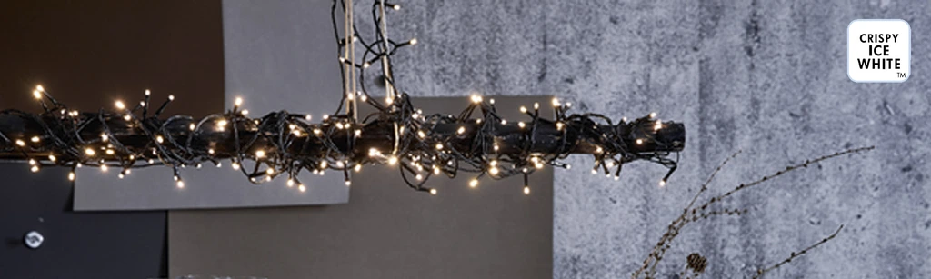Crispy Ice White är en prisvärd slingserie för utemiljö med ett krispigt, klart ljussken med en temperatur på 3000 Kelvin. I serien finns både korta och långa slingor, nät, gardiner, istappar och en flaggstångsdekoration. Samtliga har många ljuspunkter och beroende på slinga är avståndet mellan lamporna två eller sju centimeter. Med Crispy Ice White är det lätt att skapa en skön stämning!