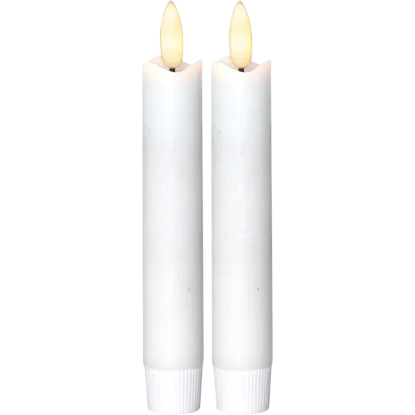 2p korta antikljus. Tillverkade utav äkta vax med en mycket naturtrogen låga som lyser med varmvitt sken. De har en inbyggd timer som gör det enkelt att bestämma när de ska lysa. Undvik att ställa dem i direkt solljus då de kan smälta av värmen.