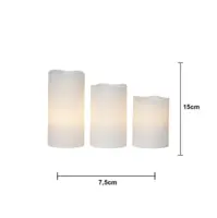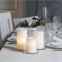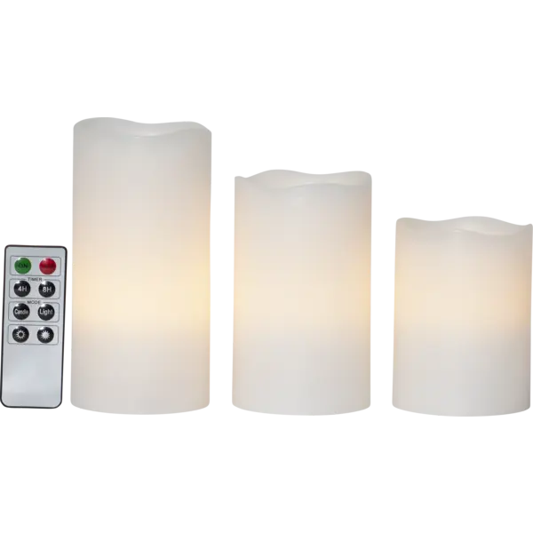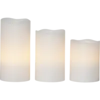 3-pack Vaxljus med en marmorerad vit yta och varmvitt sken. De är 10, 12,5 och 15cm höga. Fjärrkontroll med funktioner för timer och för ljusläge. Undvik att ställa ljusen i direkt solljus då de kan smälta och missfärgas av värmen.