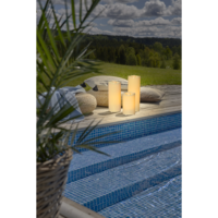 Extra stort plastljus för utomhus eller inomhusbruk. Lyser med ett flickrande sken. Tryck på brytaren för olika val: 1 konstant sken. 2 för 6h timer. 3 för av.