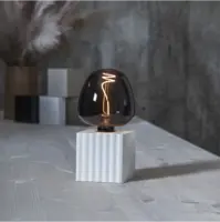 Vit lampfot med ribbat strukturmönster, tillverkad av trä med E27 sockel. Kombinera lampfoten med en snygg ljuskälla för ett elegant intryck. Gör sig bra på bord och i fönster.