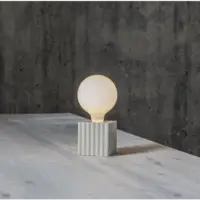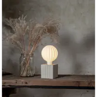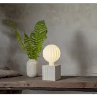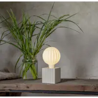 Beige lampfot med ribbat strukturmönster, tillverkad av trä med E27 sockel. Kombinera lampfoten med en snygg ljuskälla för ett elegant intryck. Gör sig bra på bord och i fönster.