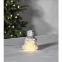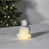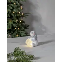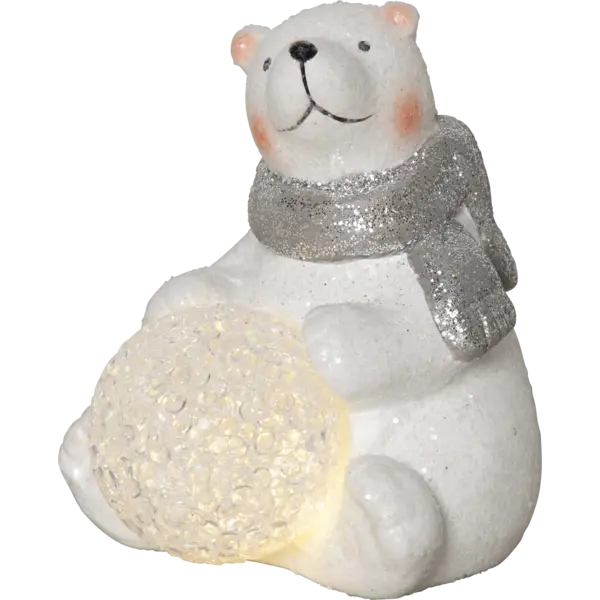 Dekorativ isbjörn med en snöboll ifamen, det lyser fint i snöbollen. Isbjörnen är vit med frostig känsla. Produkten har timer funktion och drivs av 2st AG13/LR44 batterier som ingår. Härlig dekoration till vintern och jul. Dekorera barnrummet eller placera den på ett bord eller hylla för bästa advent och julstämingen.