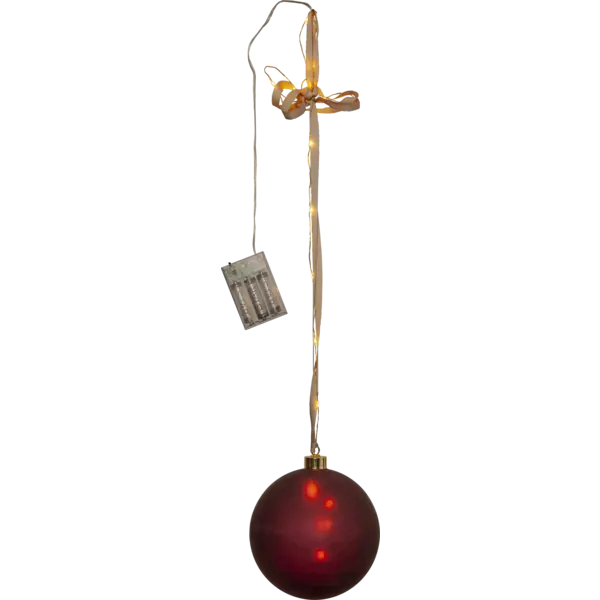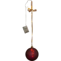 Glaskula i matt röd färg, dew drops längst dekorationsbandet och i glaskulan, 13 Led längst med dekorationsbandet och 5 Led i kulan. Dekoration ger ett vackert stämningsfullt sken. Batteridriven och den inbyggda timern gör det lätt att ställa in när produkten ska lysa. Dekorera med glaskulan till jul och advent, perfekt juldekoration som ger en magiskt stämning till fönster och inne i rummet.