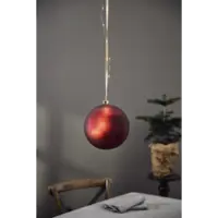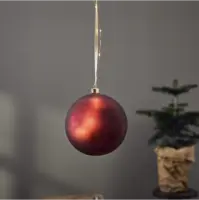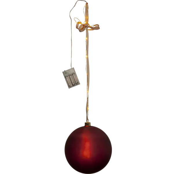 Glaskula i matt röd färg, dew drops längst dekorationsbandet och i glaskulan, 13 Led längst med dekorationsbandet och 7 Led i kulan. Dekoration ger ett vackert stämningsfullt sken. Batteridriven och den inbyggda timern gör det lätt att ställa in när produkten ska lysa. Dekorera med glaskulan till jul och advent, perfekt juldekoration som ger en magiskt stämning till fönster och inne i rummet.