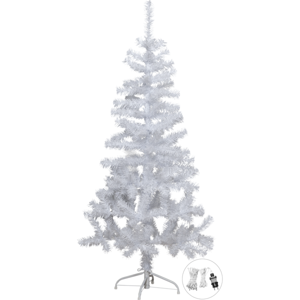 150cm konstgran med bipackad 80-ljusslinga i Crispy vit LED. Granen går bra att använda både med och utan slinga.