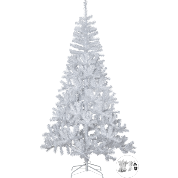 210cm konstgran med bipackad 180-ljusslinga i Crispy vit LED. Granen går bra att använda både med och utan slinga.