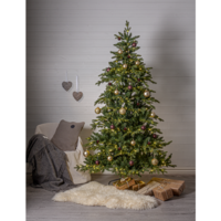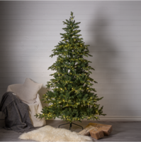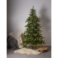 Julgranen Larvik är 210 cm hög och ca 130 cm bred, den är tillverkade av en mix av PE tips och rundklippta samt pilklippta PVC tips, denna mix ger ett tätt och lyxigt utseende. Grenarna är fastsatta på stammen med gångjärn vilket gör montering enkel då grenarna faller på rätt plats när de olika delarna sätts i varandra, det enda som återstår är att vika ut kvistarna till den form man önskar för att få en vacker julgran. Grenarna sitter fast i lager och ger ett naturligt utseende. Med 700 små varmvita ljuspunkter lyser den upp vackert inomhus eller utomhus.