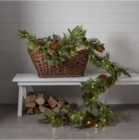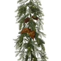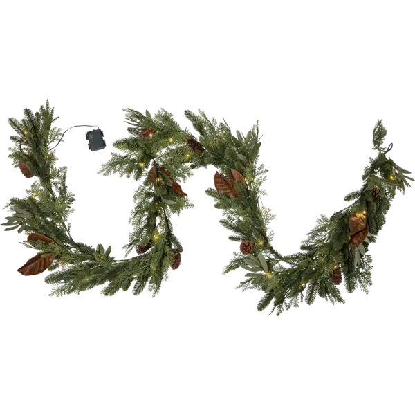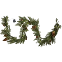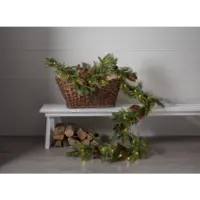 Mixi-girlangen är 280 cm och är gjord av en blandning av löv och barr, gjorda av PE-material. Den blir vacker som dekoration både inomhus och utomhus. Med 30 varmvita daggdroppar lyser den upp med ett fint sken, slingan drivs av 3 AA-batterier, dessa ingår ej.