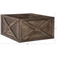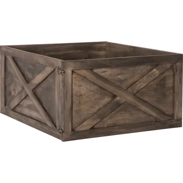 Öppen trälåda som används för att täcka julgranens fot, gjord i två delar av furu och betsad i en mörkbrun färg. Enkel att sätta ihop med hjälp av de fastsatta dekorativa krokarna. Yttermått uppfälld 45x44,5x25cm. Passar granfötter upp till 57cm