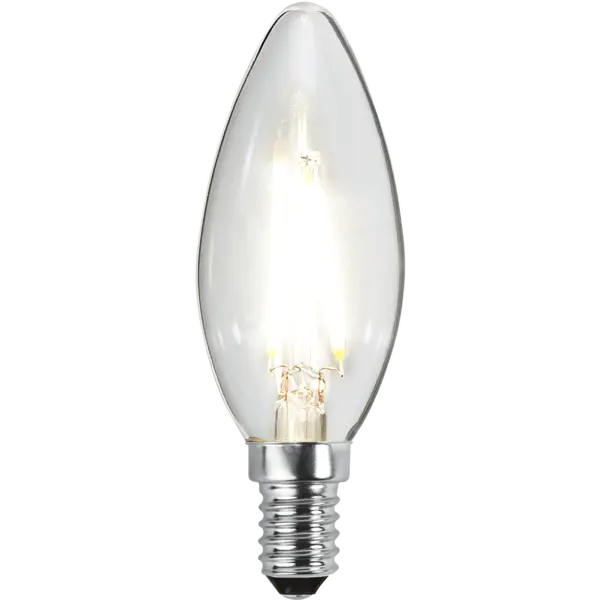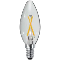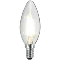 Kronljuslampa med LED, klart glas och E14-sockel. Färgtemperaturen är 4000K vilket gör den utmärkt för belysning vid läsning eller arbete.