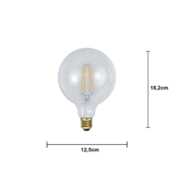 Globformad ljuskälla med klart glas och LED. Den har E27-sockel och färgtemperaturen är varma, behagliga 2100K. Med hjälp av en dimmer kan du enkelt ändra ljusstyrkan.