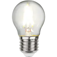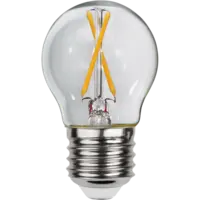 Klotlampa med LED, E27-sockel och klart glas. Färgtemperaturen är 4000K, lämpar sig bra vid läsning eller i arbetsmiljöer.