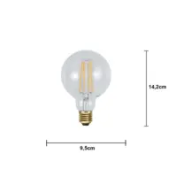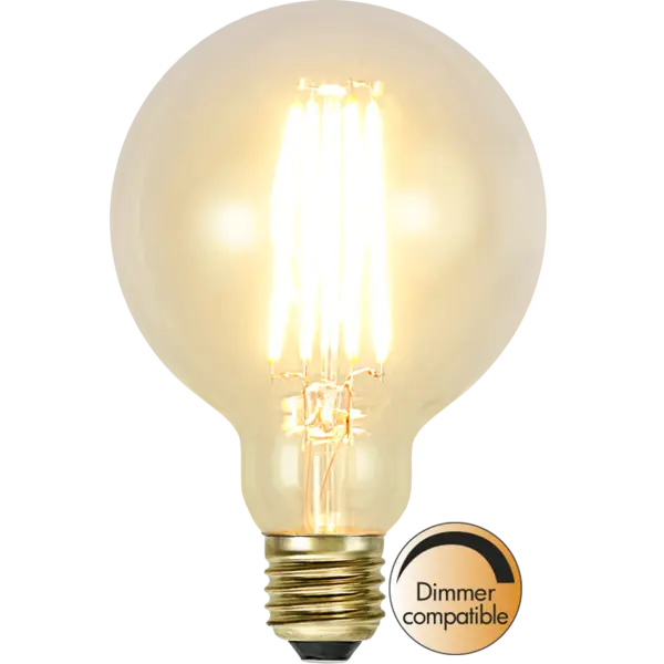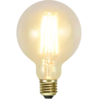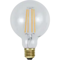 Globformad ljuskälla med klart glas och LED. Den har E27-sockel och färgtemperaturen är behagliga 2100K. Den är dimmerkompatibel så ljusstyrkan kan enkelt anpassas efter behov.