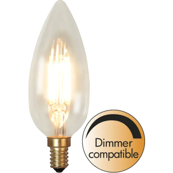 LED-ljuskälla med klart glas som sprider ett vackert sken. Färgtemperaturen är behagligt varmvitt 2200K och lampan är dimmerkompatibel.