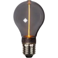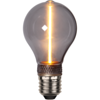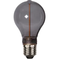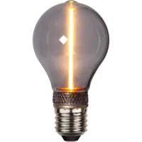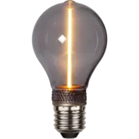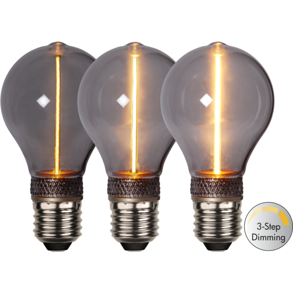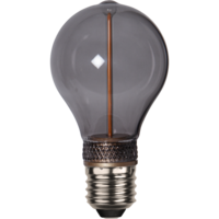 Dekorativ rökfärgad normallampa med 3-stegs klickdimring, ljusstyrkan ändras enkelt genom slå av och på strömbrytaren. Välj mellan 60-30-10lm. Ljusfärgen är 1800K och sockeln är E27. Elegant ljuskälla med en lång filamentstav i glaskroppen.