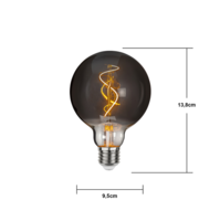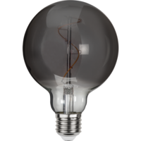 Läcker LED-lampa med rökfärgat glas. Denna ljuskälla har ett extra tunnt filament, endast 0.8 mm, och ger ett mysigt och varmt sken. Lämpar sig ypperligt för dekorationsbelysning och passar perfekt i våra upphäng, eller lampfötter. Hittar sin självklara plats över såväl soffbord, bardisk som i fönstret. Fin själv eller i ett arrangemang med våra övriga Grace.
