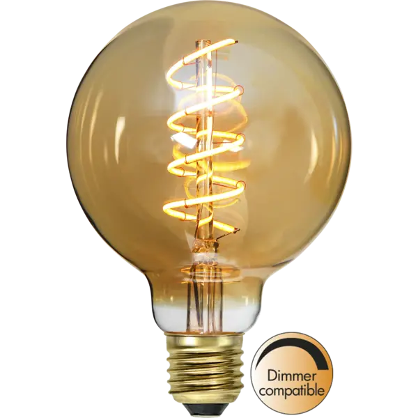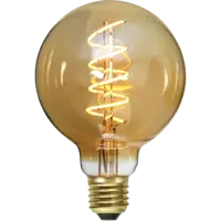 Decoration LED-lampa med amberfärgat glas. Spiralen inuti skapar ett varmt och mjukt sken. Lampan är dimmerkompatibel och har E27-sockel.