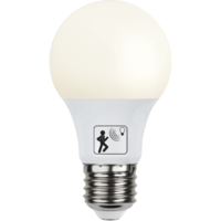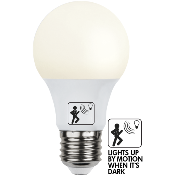 Lampa med ljus- och rörelserelä som automatiskt tänds av rörelse när omgivningen är mörk, mellan 0-30lux. Rörelsesensor når ca 4-6m beroende på placering och ljuskällan lyser i ca 60s vid aktivitet. Denna ljuskälla kan ha konstant sken också, detta uppnås genom att bryta strömmen och sedan slå på strömmen med någon sekunds intervall. För att nollställa bryt strömmen och låt vara av minst 15 sekunder. Slå sedan på strömmen igen.