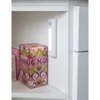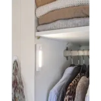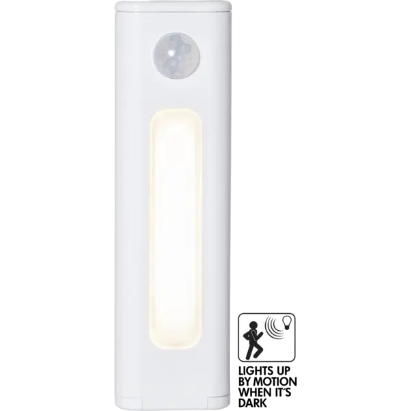 Batteridriven nattlampa med LED. Välj mellan rörelsesensor eller fast sken. Ljusskenet kan dimras upp eller ned i läge ON. Minnesfunktion gör att lampan lyser upp med senast valda ljusstyrka. För inomhusbruk!