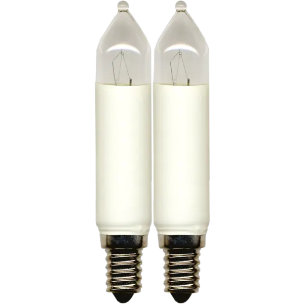 2-pack skaftlampor med E14 sockel, 34V. Användningsområdet är inomhus.