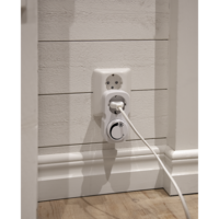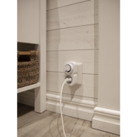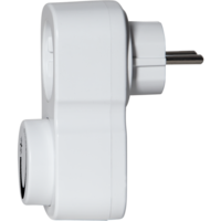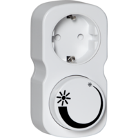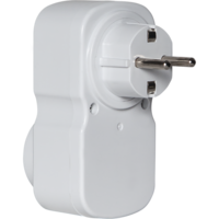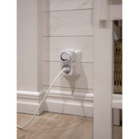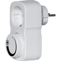 Plug-in dimmer som kopplas in direkt i ett vägguttag. Vrid på knappen för att justera ljuset. Tryck för att stänga av. Kan belastas med 1-200VA. Får endast användas med dimbara ljuskällor.