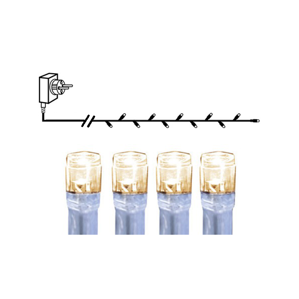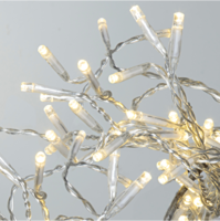 Serie LED ljusslinga med transparent kabel för utomhusbruk. Ljusslingan är 4 meter lång och har 40 varmvita LED-ljuskällor. Dekorera träd och buskar med denna ljusslinga.
