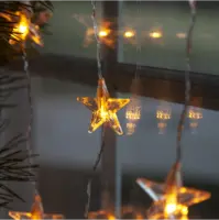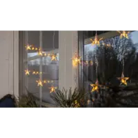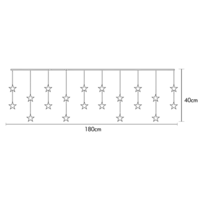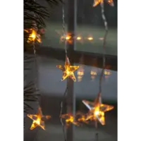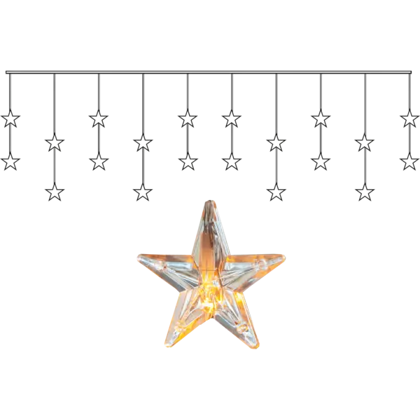 Härlig ljusgardin med varmvitt sken för inomhusbruk. Placera gardinen i fönstret som en härlig dekoration med vackert ljus. Stjärngardinen har 20st LED-ljuskällor och en transparent kabel.