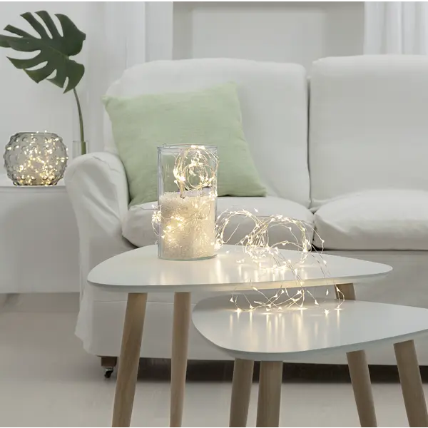 Underbar dekorationsslinga med dew drop. Ljusslingan har 200 kallvita LED-ljuskällor som avger ett vackert sken. Härlig dekoration att ha framme till vardags och fest. Bukettslinga med 10 strängar