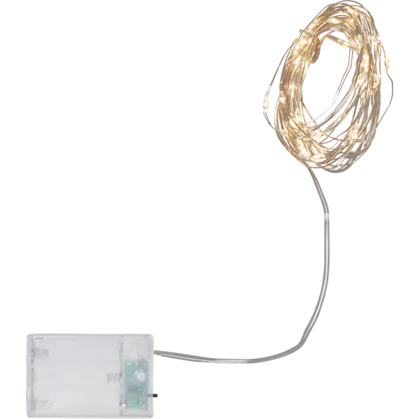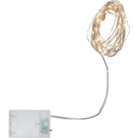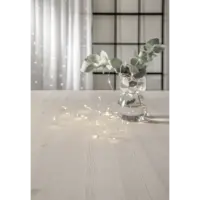 Batteridriven ljusslinga med 40 stycken LED dew drops. Slingan är silverfärgad med varmvitt ljussken. Timerfunktionen gör det enkelt att ställa in när slingan ska vara tänd. Användbar slinga för bordsdekorationer, blomsterarrangemang mm.
