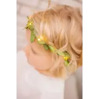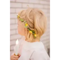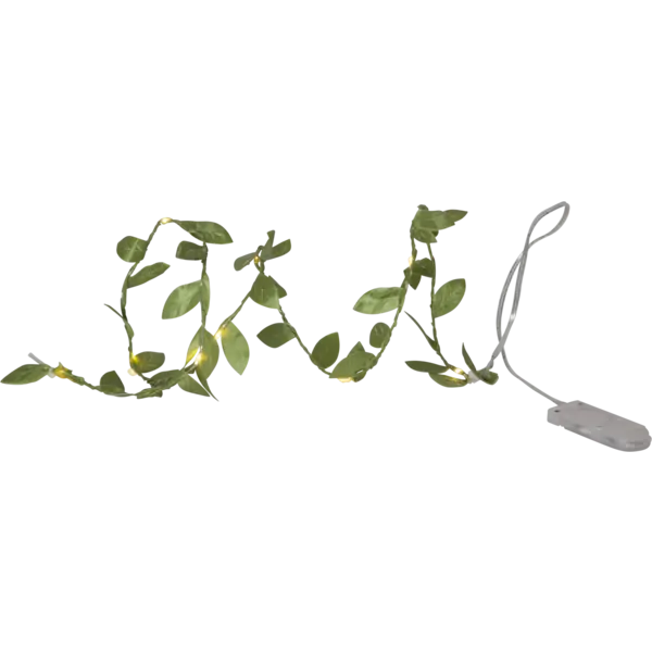 Batterislinga med gröna löv i polyester. Vacker bordsdekoration eller som hårgirlang till Luciatåget.