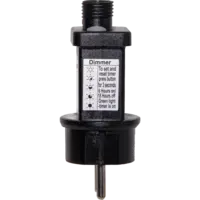 Tillbehör till slingserierna Shiny Warm White, Golden Warm White och Crispy Ice White. Transformator med 4stegsdimmer (100%, 75%, 50%, 25% ljussken) och timerfunktion. För timerfunktion, pressa ner knappen på transformatorn i ca 3 sekunder, grönt sken = timer på. Timerfunktion 6 timmar på 18 timmar av, repeterande. Passar till artiklarna 594-62, -64.