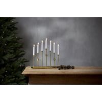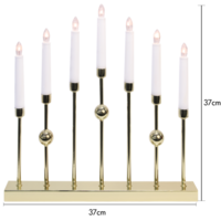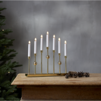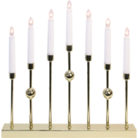 Stilren metalljusstake i mässing. Ljusstaken har 7 ljuskällor med mysigt sken. En dekorativ ljusstake att ha i hemmet.