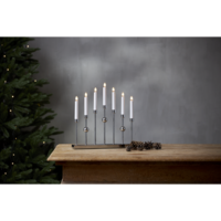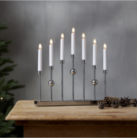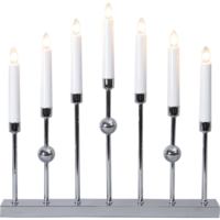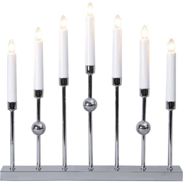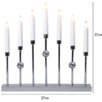 Stilren metalljusstake i krom. Ljusstaken har 7 ljuskällor med mysigt sken. En dekorativ ljusstake att ha i hemmet.