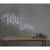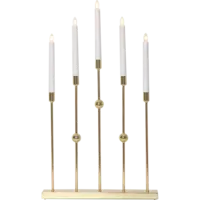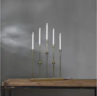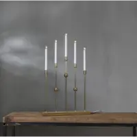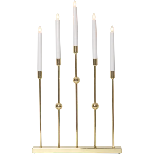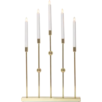 Stilren adventsljusstake i mässingsfärgad metall. Ljusstaken har 5 ljuskällor med mysigt sken. Placera i ett fönster eller på en skänk, passar utmärkt till advent och jul.