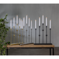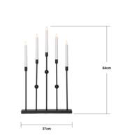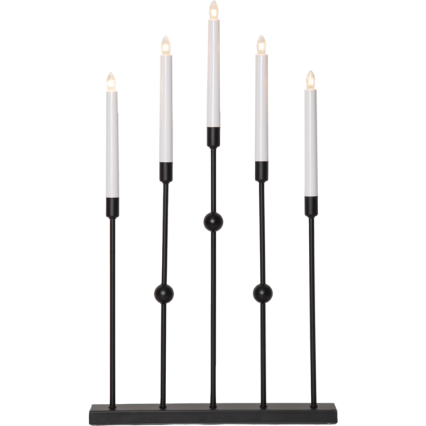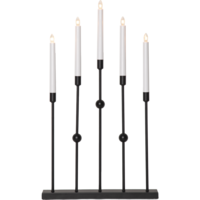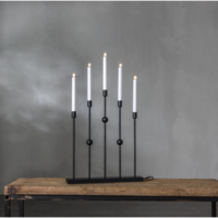 Stilren adventsljusstake i metall. Färgen är svart. Ljusstaken har 5 ljuskällor med mysigt sken. Placera i ett förnster eller på en skänk, passar utmärkt till advent och jul.