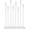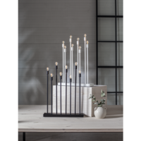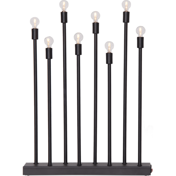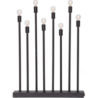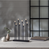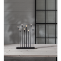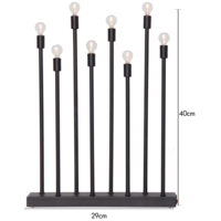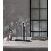 Uppladdningsbar modern adventsljusstake i metall. ljusstaken har rund led lampor som ger stämningsfullt ljus. Passar bra i ett fönster eller på en bänk eller varför inte på ett bord? Den är lätt att placera då det inte kräves något eluttag i närheten.