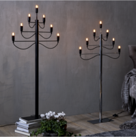 Stilren och modern golvstake i metall, matt svart och 120 cm hög. Rum för 7 ljuskällor. Levereras med hel mitt del, endast botten plattan monteras. Placera den på golvet och den ger ditt hem en modern touch. Fantastisk ljusstake hela året runt och något alldeles extra till advent och jul.