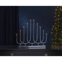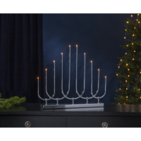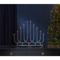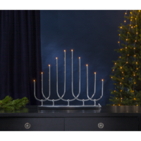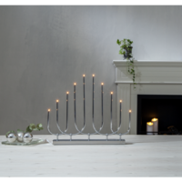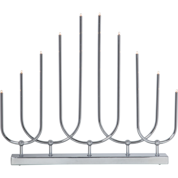 En elegant ljusstake i krom färg. 10st E5 ljuskällor som gör att ljusstakens lampor glöder vackert och sprida en härlig julkänsla.