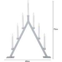 Oliver är en adventsljusstake i grå metall. 7 ljuskällor lyser stämningsfullt och skapar en fin julstämning i hemmet eller i den offentliga miljö. Ljuskällan är en led lampa med soft glow filament.