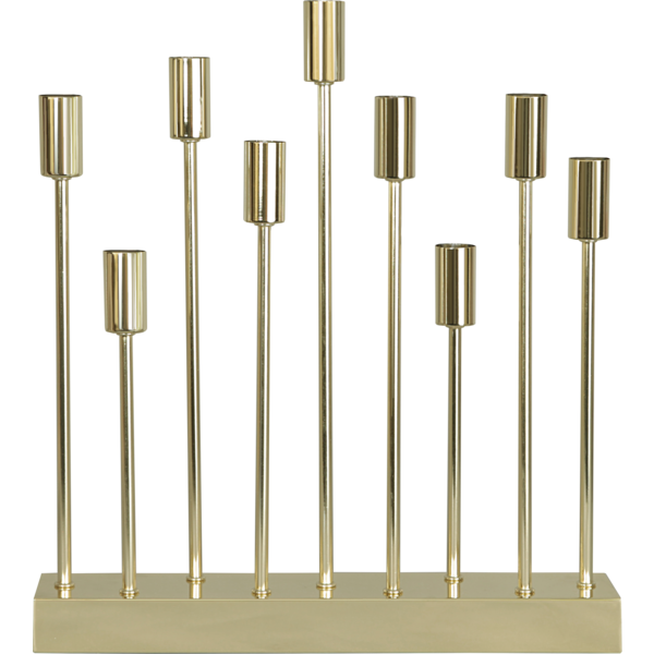 Snygg och stilren metalljusstake i mässing. Ljusstaken har plats för 9 ljuskällor. E14 sockel.