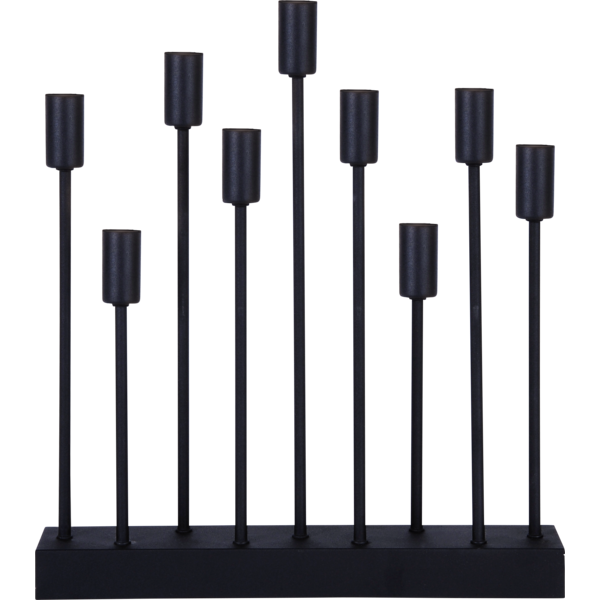Snygg och stilren metalljusstake i svart. Ljusstaken har plats för 9 ljuskällor. E14 sockel.