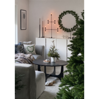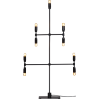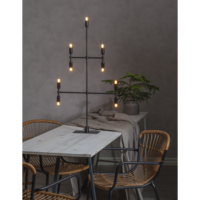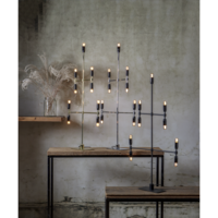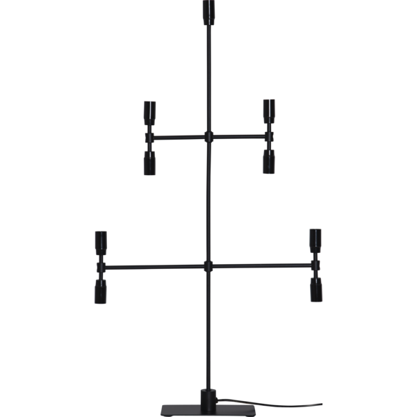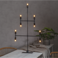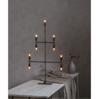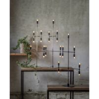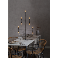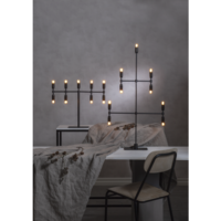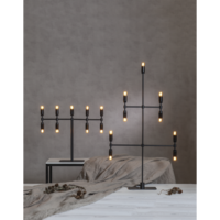 Modern metall ljusstake i svart, dubbla lamphållare på alla armar förutom topplampan. Dekorera till advent eller året runt som en fin inredningsdetalj. Passar både hem och offentlig miljö.