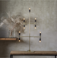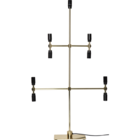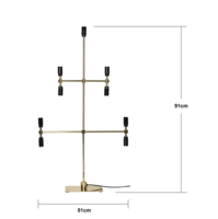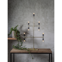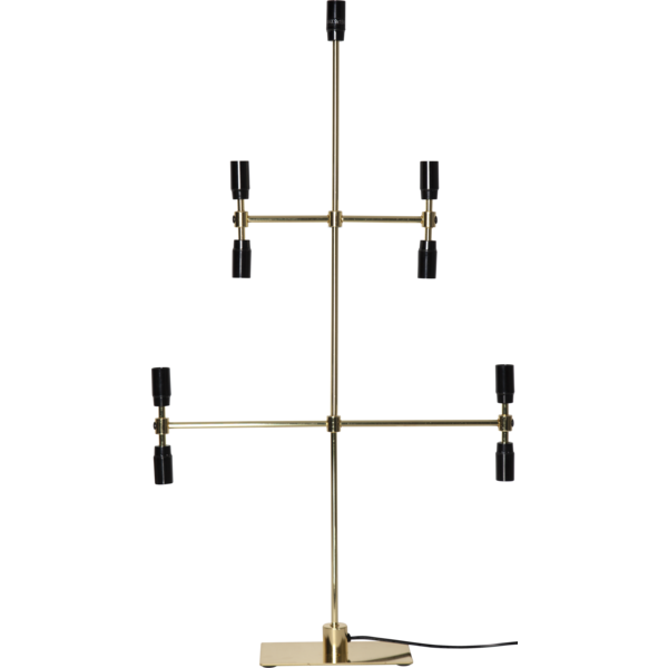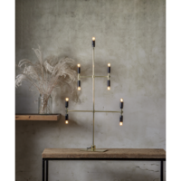 Modern metall ljusstake i mässingsfärg, dubbla lamphållare i svart på alla armar förutom topplampan. Dekorera till advent eller året runt som en fin inredningsdetalj. Passar både hem och offentlig miljö.