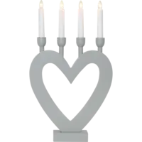 Grå träljusstake med formen av ett hjärta, 4 ljus. Placera i fönstret eller på en skänk till advent.