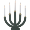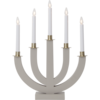 Grafit grå träljusstake med 5 ljuskällor och guldmålad dekoration, lätt att placera och skapar en härlig julstämmning både i fönster och inne i rummet på tex en hylla eller skänk.