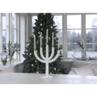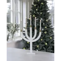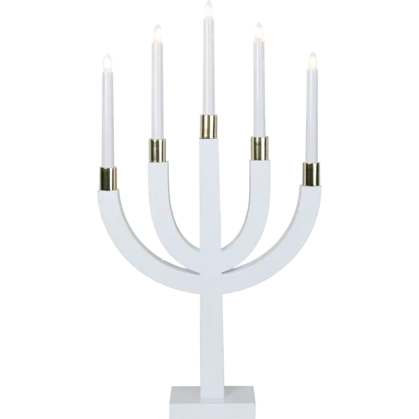 Vit träljusstake med mässingsbas på ljusen. Placera ljusstaken exempelvis i fönstret för att skapa en härlig adventstämning i hemmet.
