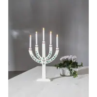 Traditionell träljusstake med fina detaljer. Adventsljusstaken har 5 ljuskällor som ger ljusstaken en mysig belysning och en hemtrevlig julkänsla. Placera i fönstret eller på en skänk.