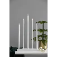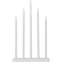 Vit träljusstake med 5st ljuspipor i metall. Denna snygga ljusstake ger ditt hem en känsla av nordisk inrednings stil .