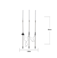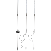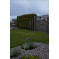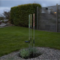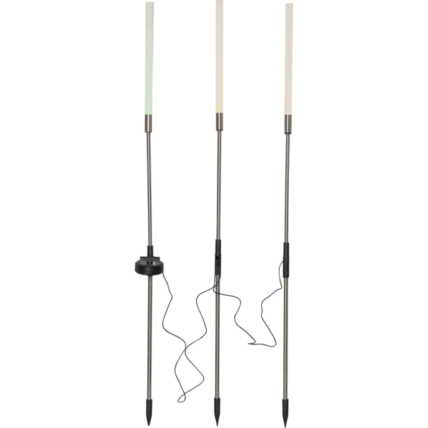 Vår vackra solcellsdrivna dekoration Bubbly 3-Pin lyser upp i mörkret. Denna solcellsbelysning har 3 pinnar i en höjd av cirka 80cm och 1cm i diameter som lyser med gult, grönt och rött sken igenom den bubbliga akryltoppen. De 3 solcellspinnarna sitter ihop med svart kabel och den totala längden blir ca 160cm, 90cm mellan 1a och 2a pinnen och 70cm till den 3e pinnen. Denna solcellsdekoration är fin att dekorera med i trädgården eller på en balkong. Själva paneldelen går att vinkla så att solen lätt kommer åt att ladda batteriet som medföljer.